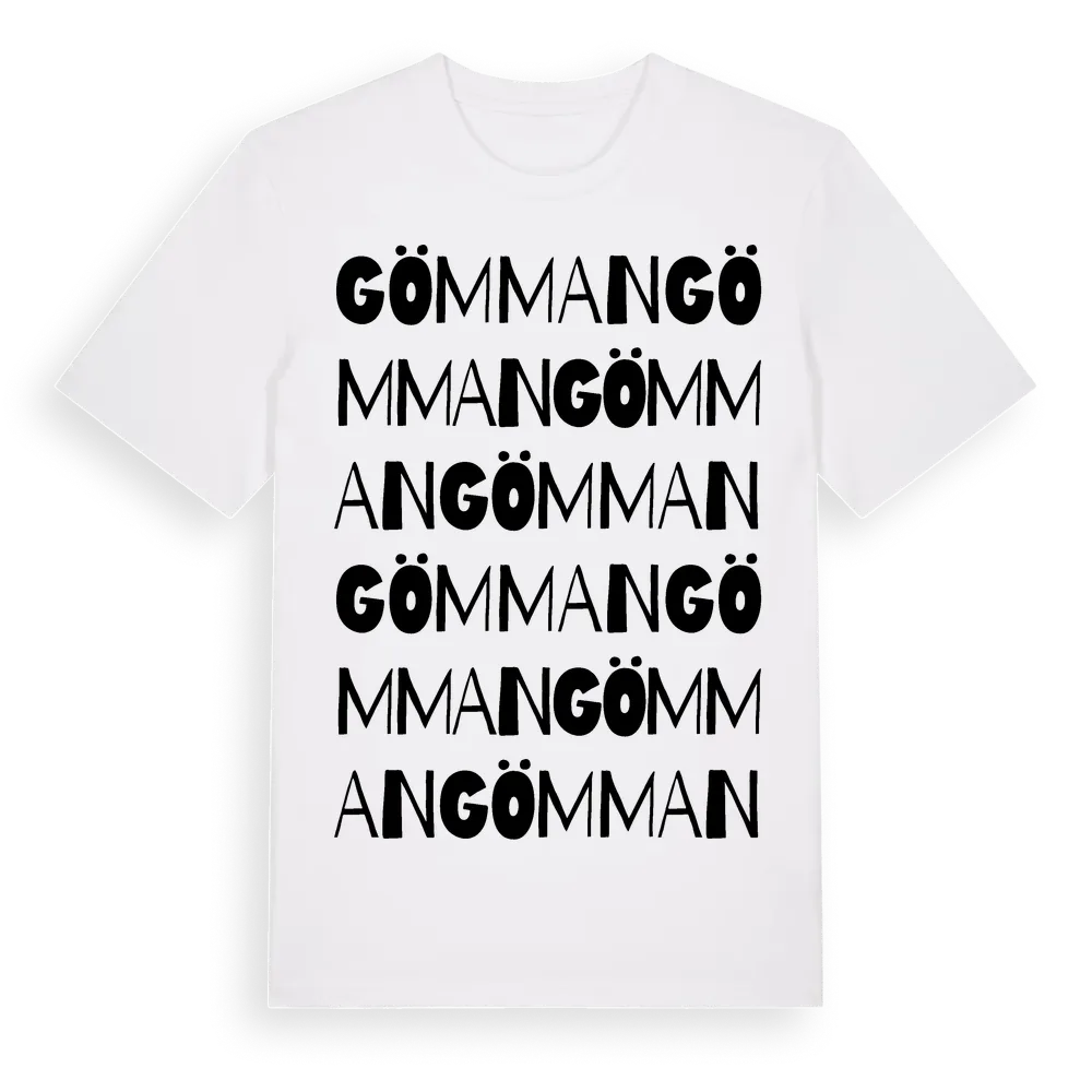 Gömman ordlek t-shirt är inspirerad av Gömman i Västra Götalands län, Sverige. Tröjan är designad för dig som har en speciell koppling till platsen – oavsett om du bor här, har rötterna här eller bara älskar Gömman.