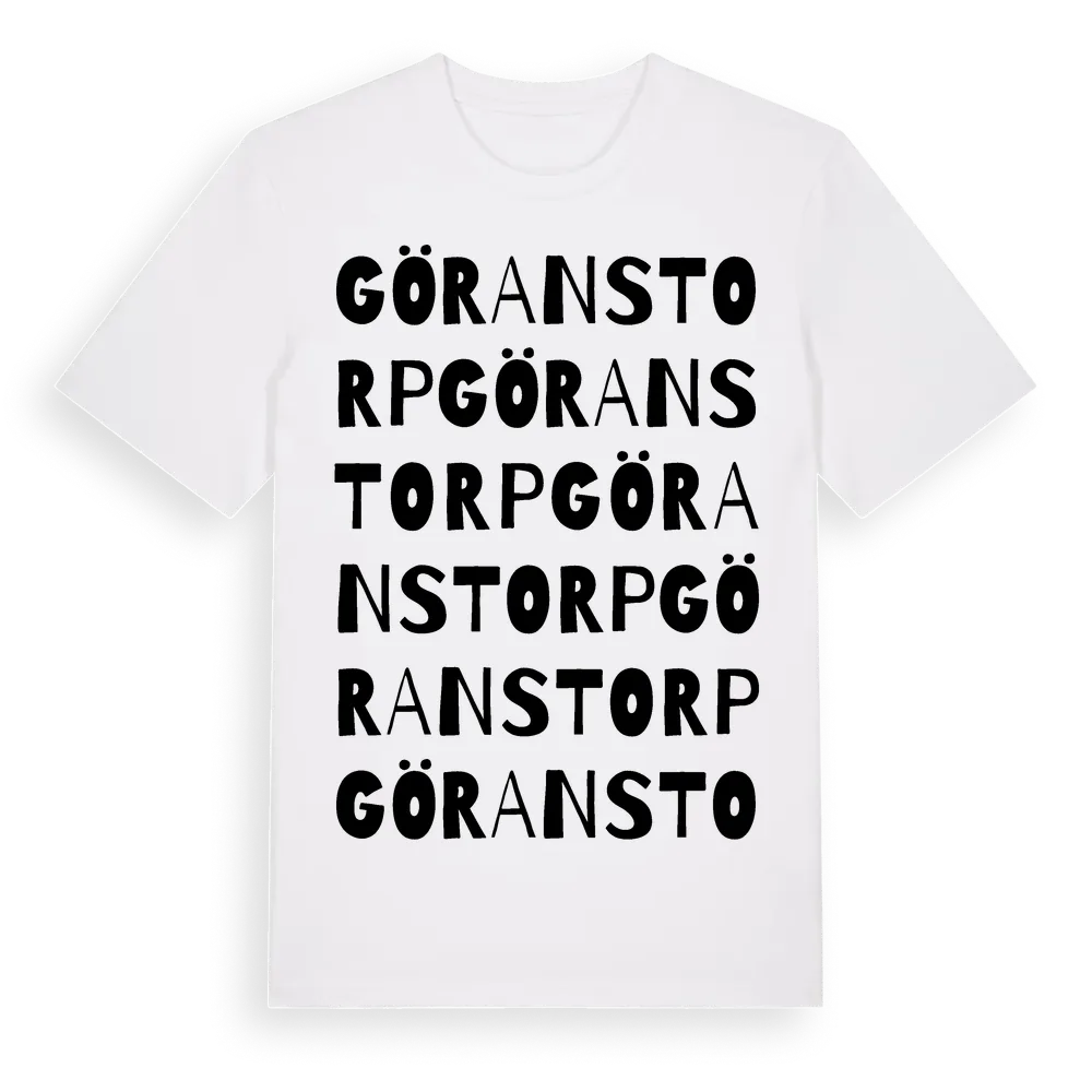 Göranstorp ordlek t-shirt är inspirerad av Göranstorp i Västra Götalands län, Sverige. Tröjan är designad för dig som har en speciell koppling till platsen – oavsett om du bor här, har rötterna här eller bara älskar Göranstorp.