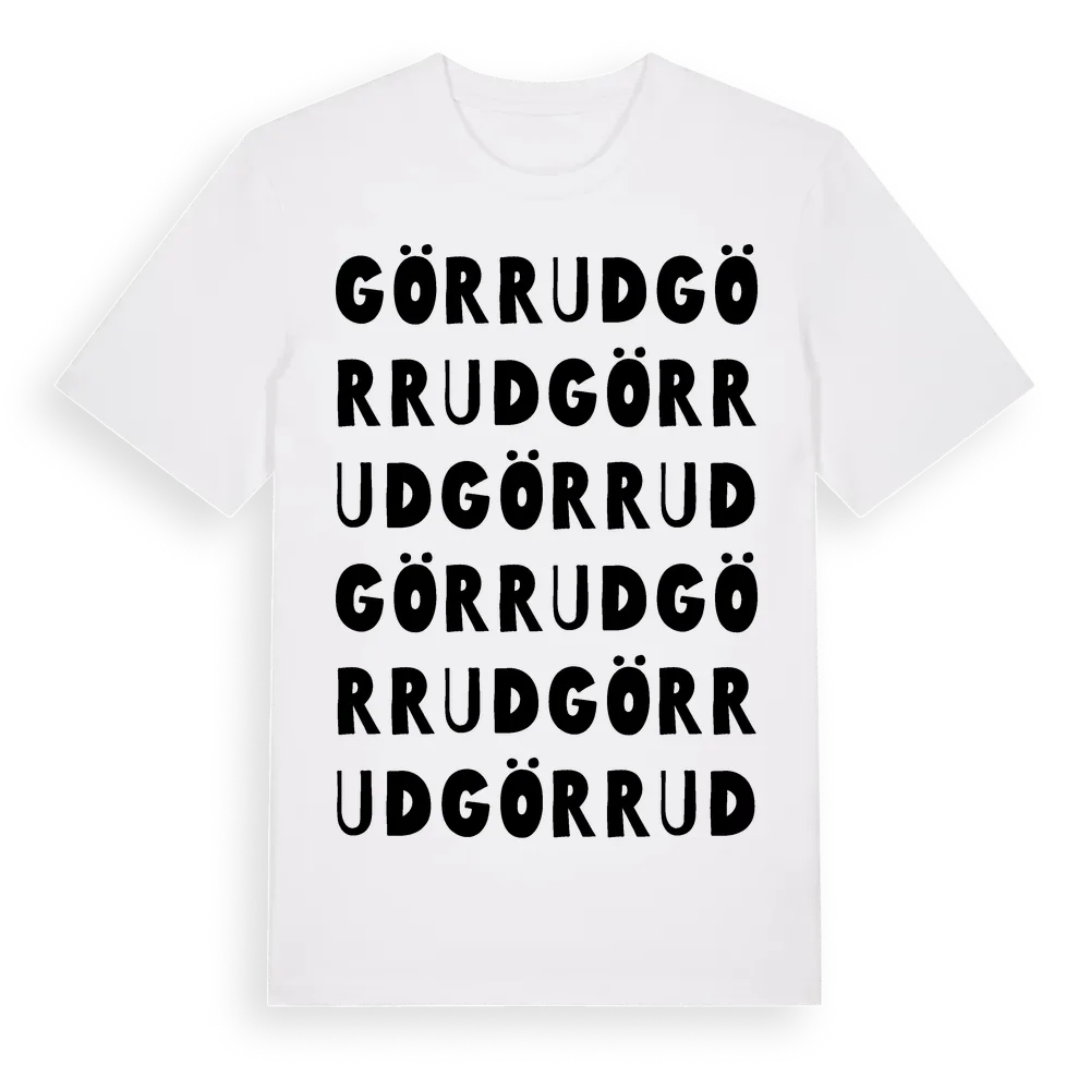 Görrud ordlek t-shirt är inspirerad av Görrud i Västra Götalands län, Sverige. Tröjan är designad för dig som har en speciell koppling till platsen – oavsett om du bor här, har rötterna här eller bara älskar Görrud.