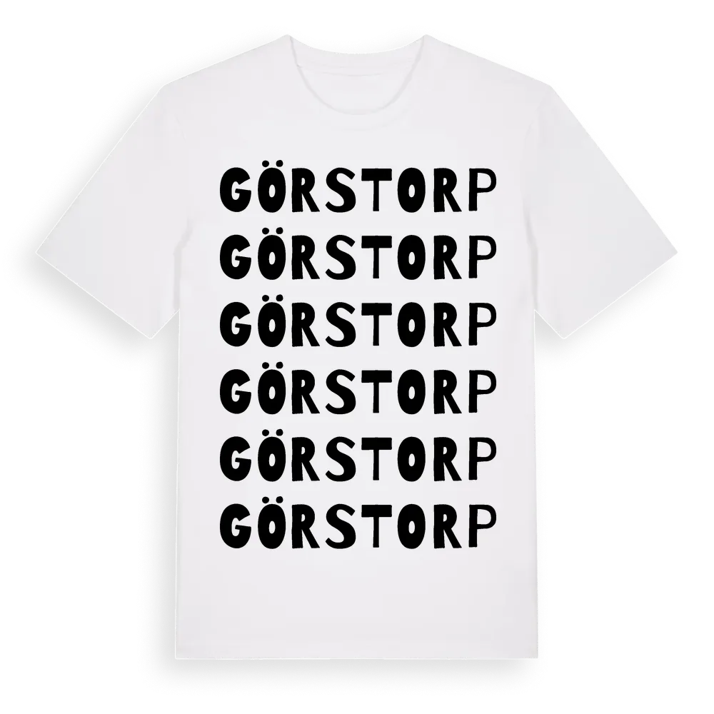 Görstorp ordlek t-shirt är inspirerad av Görstorp i Västra Götalands län, Sverige. Tröjan är designad för dig som har en speciell koppling till platsen – oavsett om du bor här, har rötterna här eller bara älskar Görstorp.