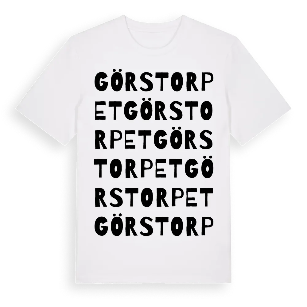 Görstorpet ordlek t-shirt är inspirerad av Görstorpet i Västra Götalands län, Sverige. Tröjan är designad för dig som har en speciell koppling till platsen – oavsett om du bor här, har rötterna här eller bara älskar Görstorpet.