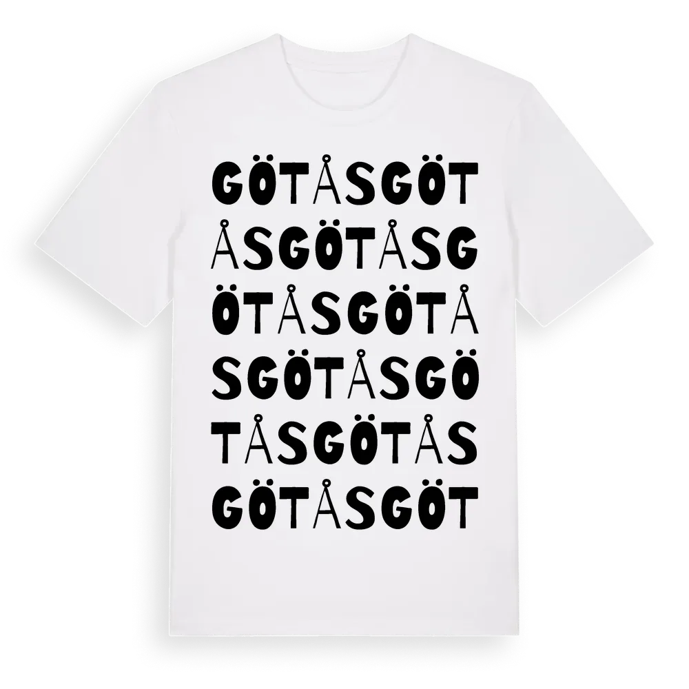 Götås ordlek t-shirt är inspirerad av Götås i Västra Götalands län, Sverige. Tröjan är designad för dig som har en speciell koppling till platsen – oavsett om du bor här, har rötterna här eller bara älskar Götås.