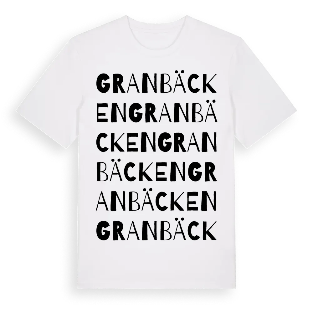 Granbäcken ordlek t-shirt är inspirerad av byn Granbäcken i Västra Götalands län, Sverige. Tröjan är designad för dig som har en speciell koppling till platsen – oavsett om du bor här, har rötterna här eller bara älskar Granbäcken.