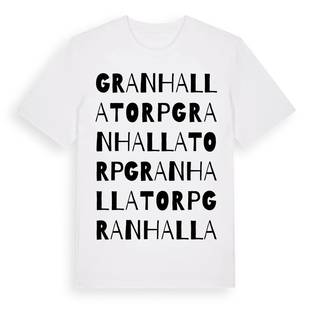 Granhallatorp ordlek t-shirt är inspirerad av byn Granhallatorp i Västra Götalands län, Sverige. Tröjan är designad för dig som har en speciell koppling till platsen – oavsett om du bor här, har rötterna här eller bara älskar Granhallatorp.