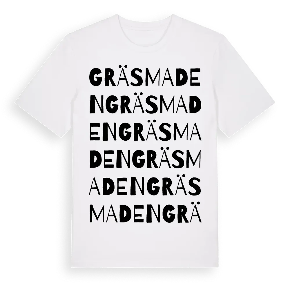 Gräsmaden ordlek t-shirt är inspirerad av Gräsmaden i Västra Götalands län, Sverige. Tröjan är designad för dig som har en speciell koppling till platsen – oavsett om du bor här, har rötterna här eller bara älskar Gräsmaden.