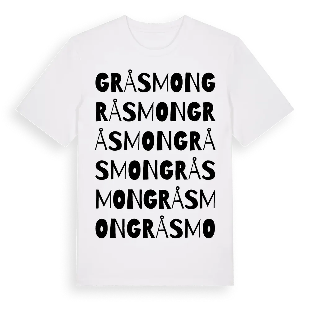 En ordlek byggd på Gråsmons namn. Subtilt och klurig – ett motiv som bara de som verkligen känner platsen fullt ut förstår. Premium bomull, unisex – från Gråsmon i Västra Götalands län.