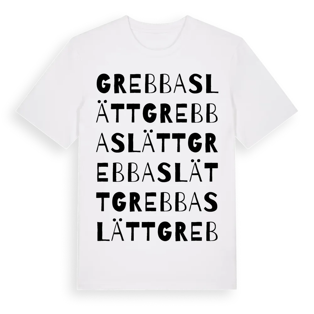 Grebbaslätt ordlek t-shirt är inspirerad av byn Grebbaslätt i Västra Götalands län, Sverige. Tröjan är designad för dig som har en speciell koppling till platsen – oavsett om du bor här, har rötterna här eller bara älskar Grebbaslätt.