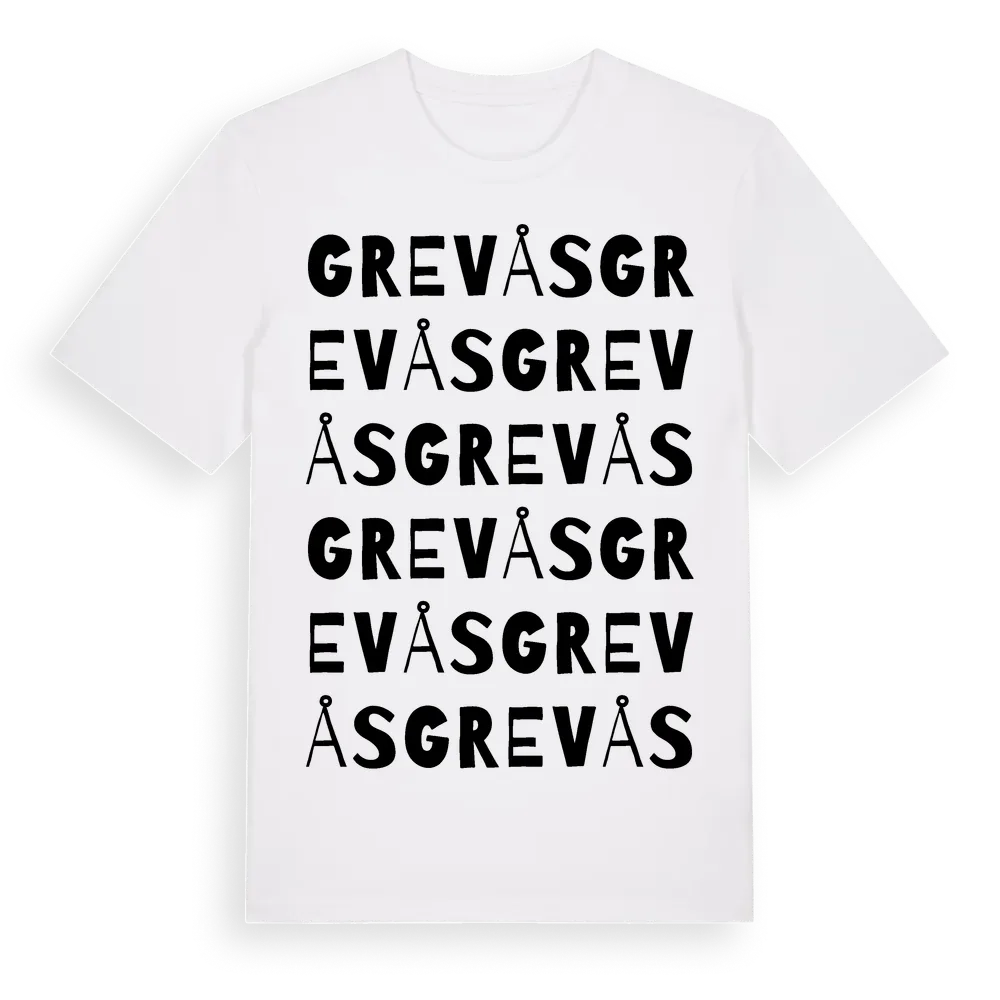 Grevås ordlek t-shirt är inspirerad av Grevås i Västra Götalands län, Sverige. Tröjan är designad för dig som har en speciell koppling till platsen – oavsett om du bor här, har rötterna här eller bara älskar Grevås.