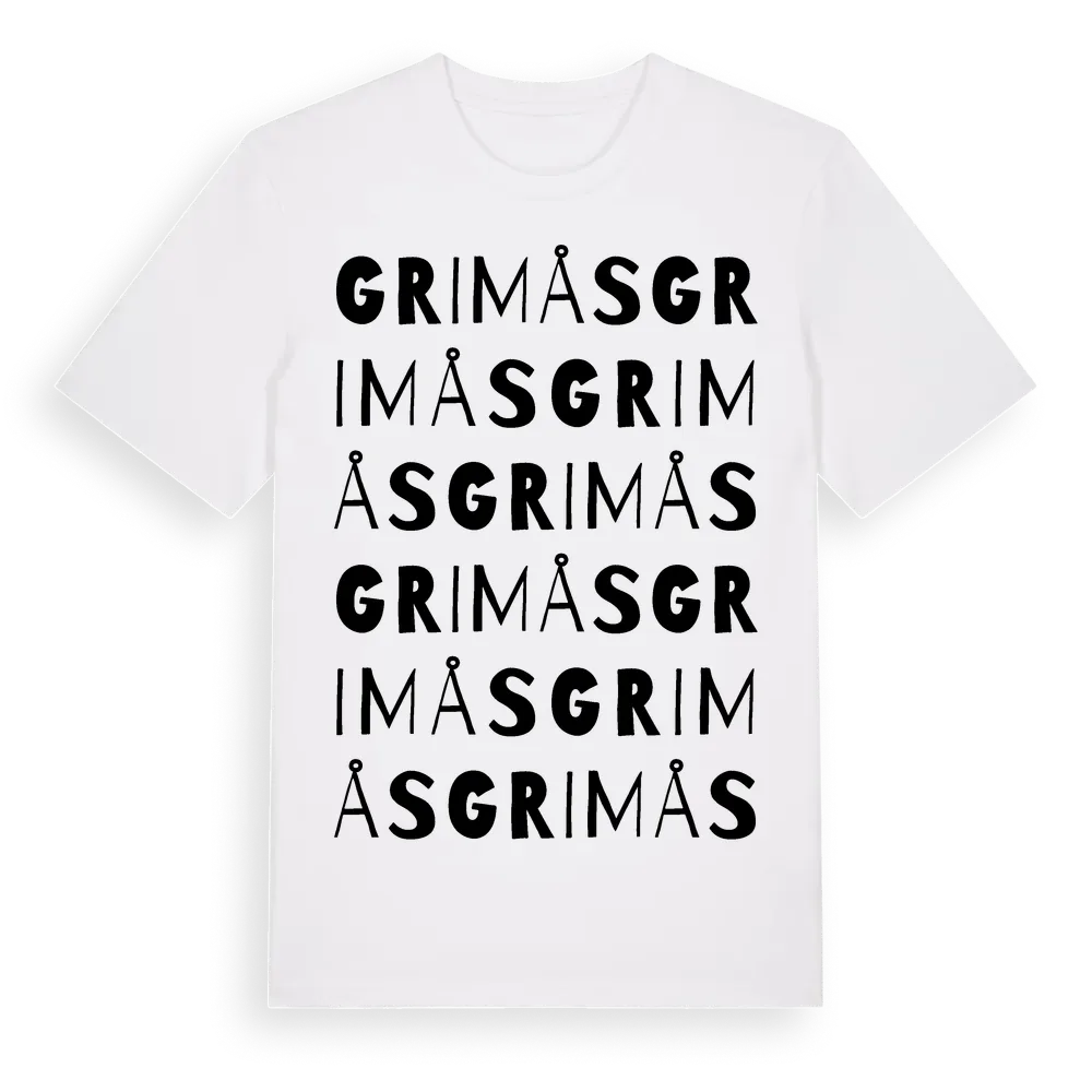 Grimås ordlek t-shirt är inspirerad av byn Grimås i Västra Götalands län, Sverige. Tröjan är designad för dig som har en speciell koppling till platsen – oavsett om du bor här, har rötterna här eller bara älskar Grimås.