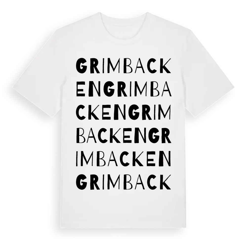 Grimbacken ordlek t-shirt är inspirerad av Grimbacken i Västra Götalands län, Sverige. Tröjan är designad för dig som har en speciell koppling till platsen – oavsett om du bor här, har rötterna här eller bara älskar Grimbacken.