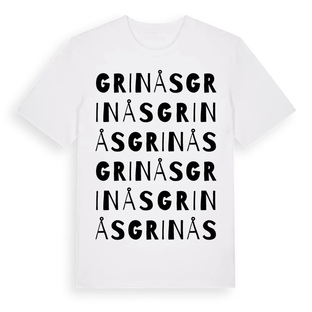 Grinås ordlek t-shirt är inspirerad av byn Grinås i Västra Götalands län, Sverige. Tröjan är designad för dig som har en speciell koppling till platsen – oavsett om du bor här, har rötterna här eller bara älskar Grinås.