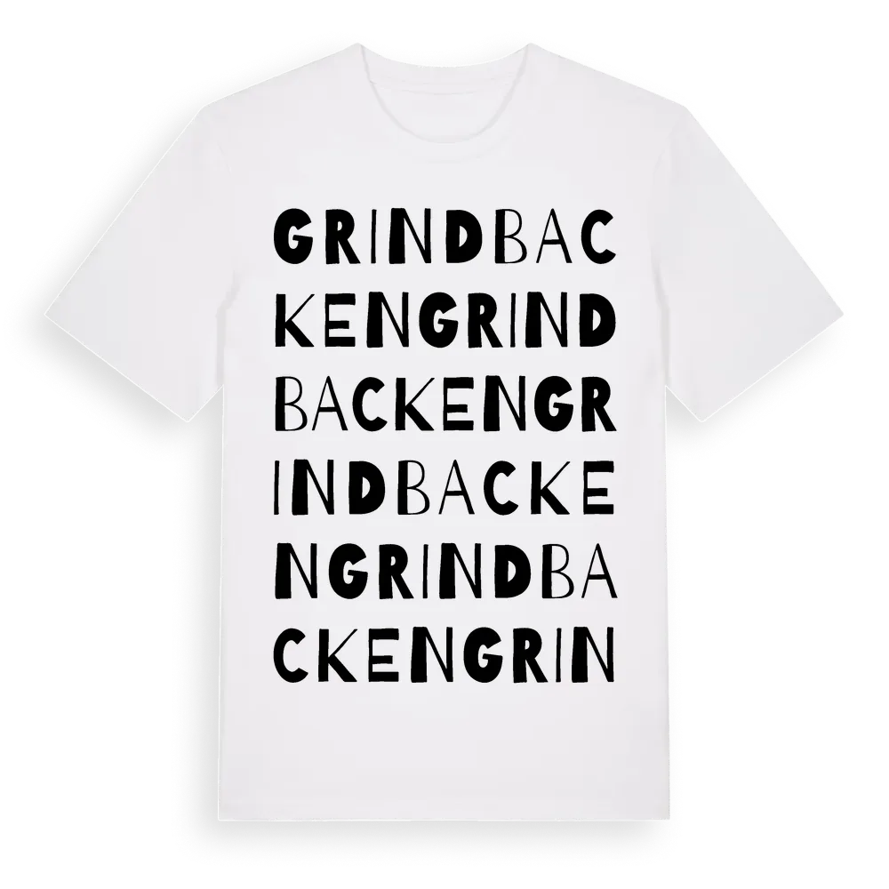 Grindbacken ordlek t-shirt är inspirerad av stadsdelen Grindbacken i Västra Götalands län, Sverige. Tröjan är designad för dig som har en speciell koppling till platsen – oavsett om du bor här, har rötterna här eller bara älskar Grindbacken.