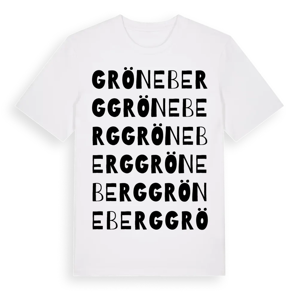Gröneberg ordlek t-shirt är inspirerad av Gröneberg i Västra Götalands län, Sverige. Tröjan är designad för dig som har en speciell koppling till platsen – oavsett om du bor här, har rötterna här eller bara älskar Gröneberg.