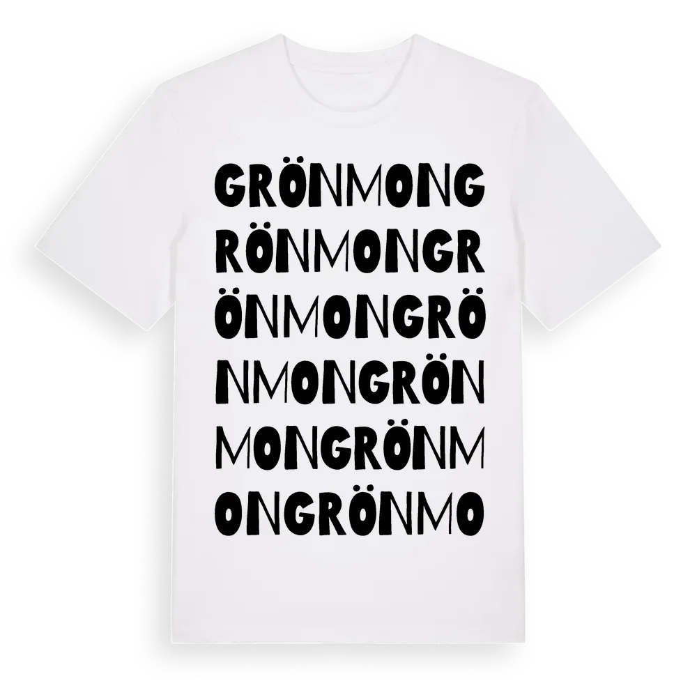 Grönmon ordlek t-shirt är inspirerad av Grönmon i Västra Götalands län, Sverige. Tröjan är designad för dig som har en speciell koppling till platsen – oavsett om du bor här, har rötterna här eller bara älskar Grönmon.