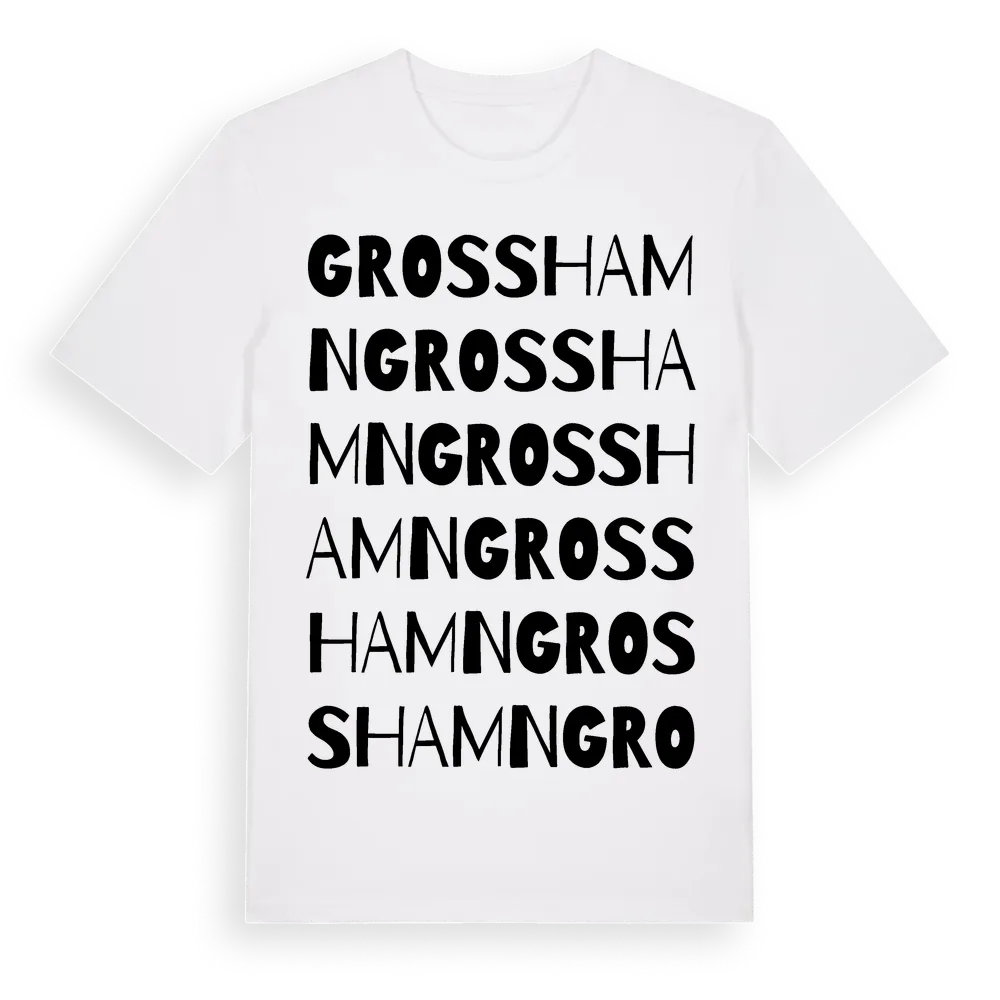 En ordlek byggd på Grosshamns namn. Subtilt och klurig – ett motiv som bara de som verkligen känner platsen fullt ut förstår. Premium bomull, unisex – från Grosshamn i Västra Götalands län.