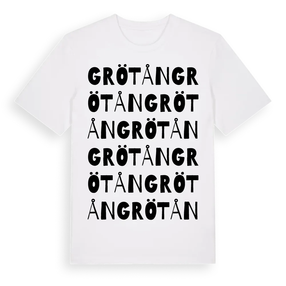 Grötån ordlek t-shirt är inspirerad av stadsdelen Grötån i Västra Götalands län, Sverige. Tröjan är designad för dig som har en speciell koppling till platsen – oavsett om du bor här, har rötterna här eller bara älskar Grötån.