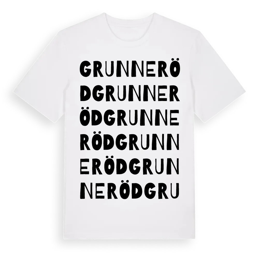 Grunneröd ordlek t-shirt är inspirerad av Grunneröd i Västra Götalands län, Sverige. Tröjan är designad för dig som har en speciell koppling till platsen – oavsett om du bor här, har rötterna här eller bara älskar Grunneröd.