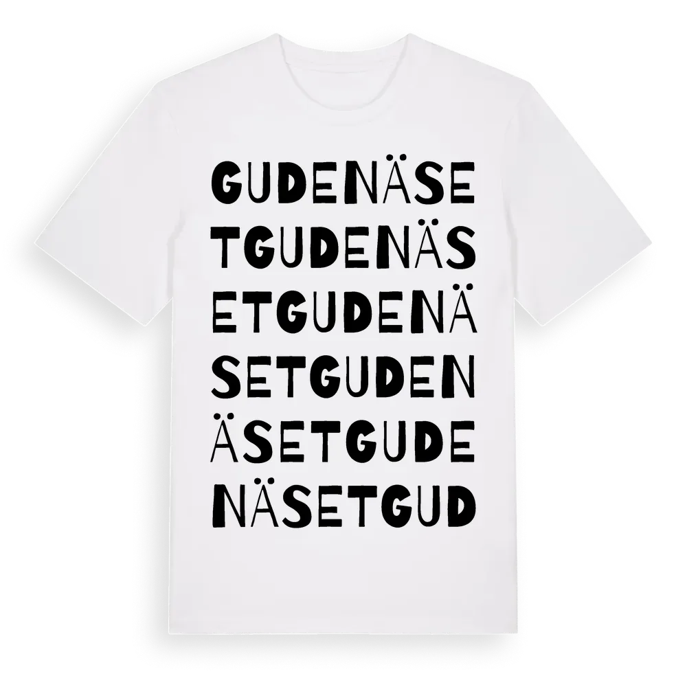Gudenäset ordlek t-shirt är inspirerad av Gudenäset i Västra Götalands län, Sverige. Tröjan är designad för dig som har en speciell koppling till platsen – oavsett om du bor här, har rötterna här eller bara älskar Gudenäset.
