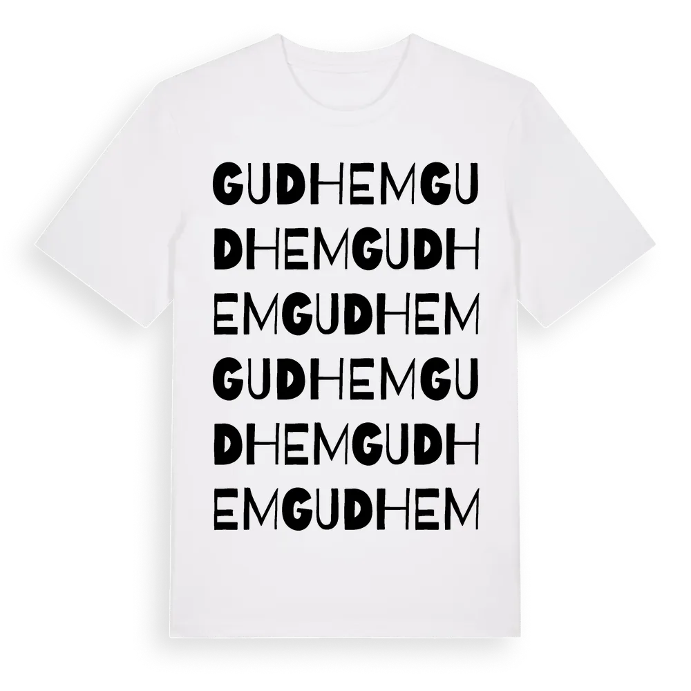 En ordlek byggd på Gudhems namn. Subtilt och klurig – ett motiv som bara de som verkligen känner platsen fullt ut förstår. Premium bomull, unisex – från byn Gudhem i Västra Götalands län.