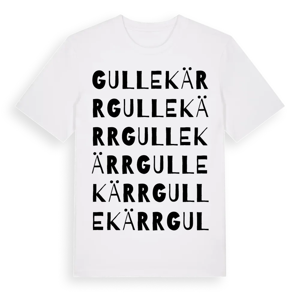 Gullekärr ordlek t-shirt är inspirerad av Gullekärr i Västra Götalands län, Sverige. Tröjan är designad för dig som har en speciell koppling till platsen – oavsett om du bor här, har rötterna här eller bara älskar Gullekärr.