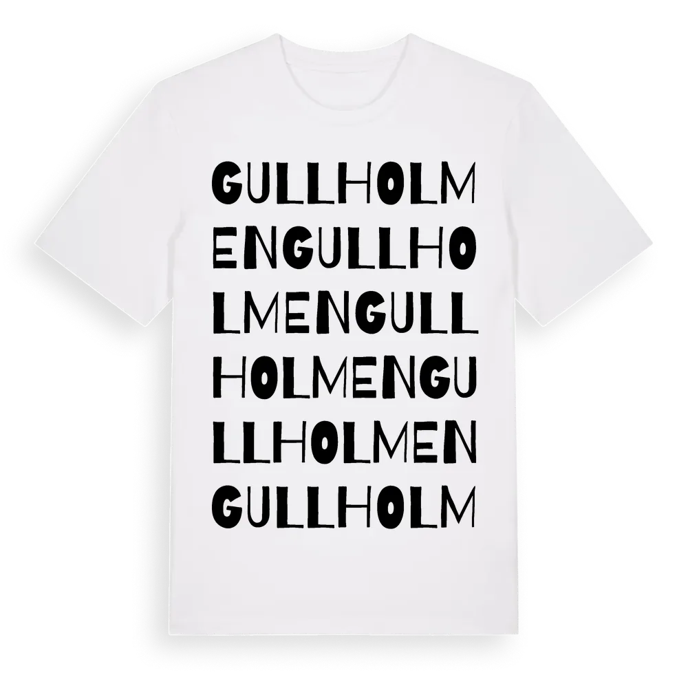 Gullholmen ordlek t-shirt är inspirerad av byn Gullholmen i Västra Götalands län, Sverige. Tröjan är designad för dig som har en speciell koppling till platsen – oavsett om du bor här, har rötterna här eller bara älskar Gullholmen.