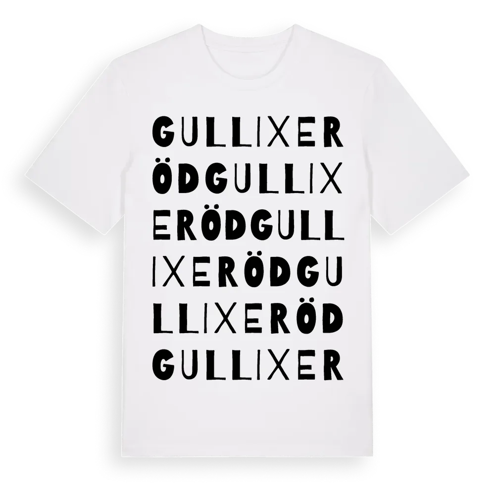 Gullixeröd ordlek t-shirt är inspirerad av byn Gullixeröd i Västra Götalands län, Sverige. Tröjan är designad för dig som har en speciell koppling till platsen – oavsett om du bor här, har rötterna här eller bara älskar Gullixeröd.