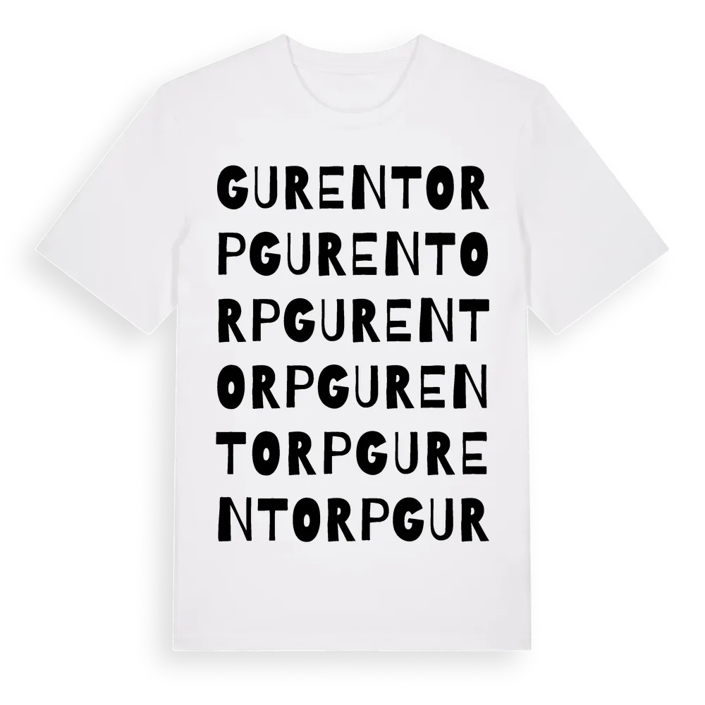 Gurentorp ordlek t-shirt är inspirerad av byn Gurentorp i Västra Götalands län, Sverige. Tröjan är designad för dig som har en speciell koppling till platsen – oavsett om du bor här, har rötterna här eller bara älskar Gurentorp.