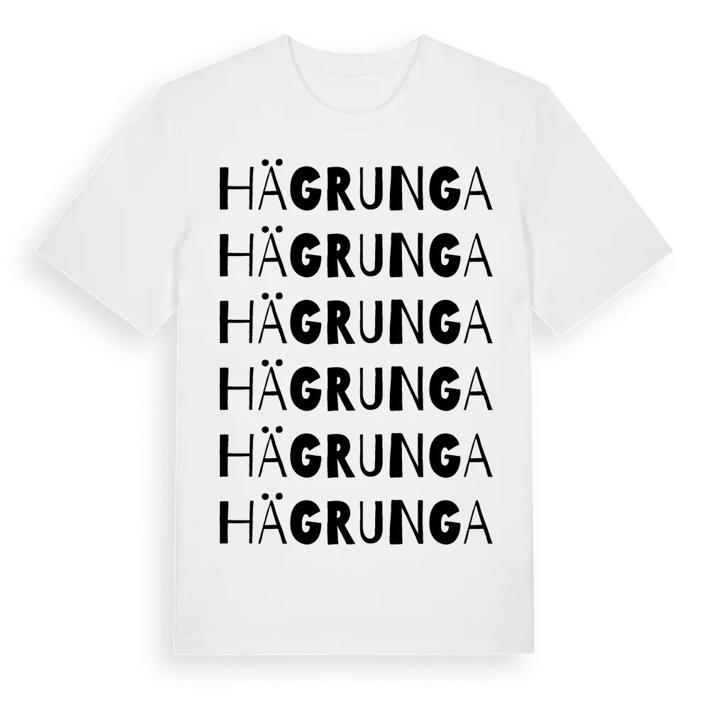 Hägrunga ordlek t-shirt är inspirerad av byn Hägrunga i Västra Götalands län, Sverige. Tröjan är designad för dig som har en speciell koppling till platsen – oavsett om du bor här, har rötterna här eller bara älskar Hägrunga.