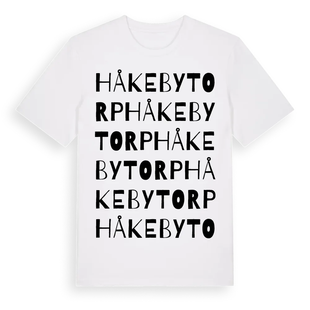 Håkebytorp ordlek t-shirt är inspirerad av Håkebytorp i Västra Götalands län, Sverige. Tröjan är designad för dig som har en speciell koppling till platsen – oavsett om du bor här, har rötterna här eller bara älskar Håkebytorp.