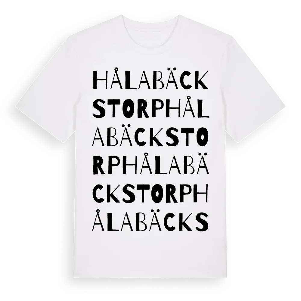Hålabäckstorp ordlek t-shirt är inspirerad av byn Hålabäckstorp i Västra Götalands län, Sverige. Tröjan är designad för dig som har en speciell koppling till platsen – oavsett om du bor här, har rötterna här eller bara älskar Hålabäckstorp.