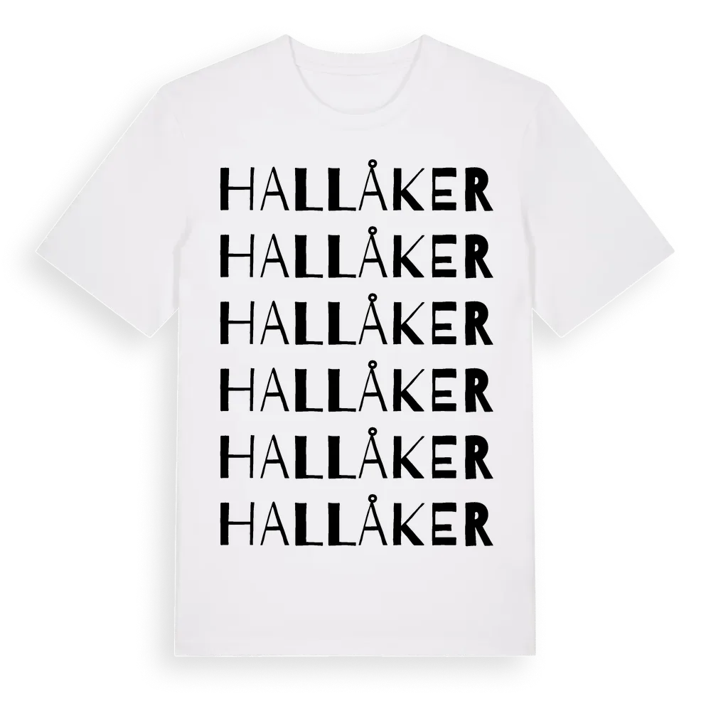 Hallåker ordlek t-shirt är inspirerad av Hallåker i Västra Götalands län, Sverige. Tröjan är designad för dig som har en speciell koppling till platsen – oavsett om du bor här, har rötterna här eller bara älskar Hallåker.