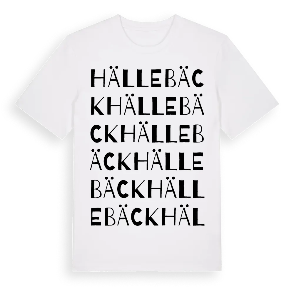 Hällebäck ordlek t-shirt är inspirerad av byn Hällebäck i Västra Götalands län, Sverige. Tröjan är designad för dig som har en speciell koppling till platsen – oavsett om du bor här, har rötterna här eller bara älskar Hällebäck.