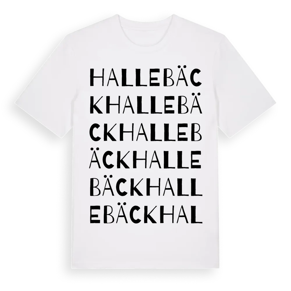 En ordlek byggd på Hallebäcks namn. Subtilt och klurig – ett motiv som bara de som verkligen känner platsen fullt ut förstår. Premium bomull, unisex – från byn Hallebäck i Västra Götalands län.