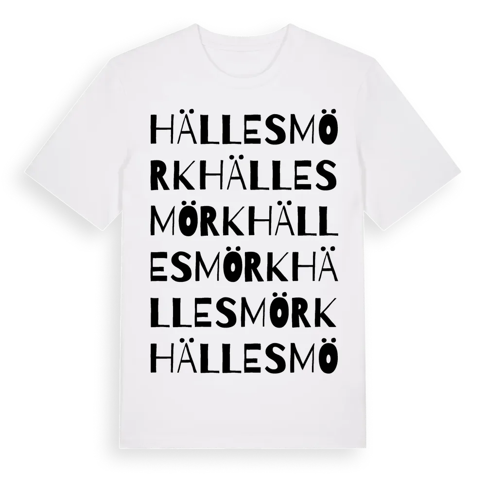 Hällesmörk ordlek t-shirt är inspirerad av byn Hällesmörk i Västra Götalands län, Sverige. Tröjan är designad för dig som har en speciell koppling till platsen – oavsett om du bor här, har rötterna här eller bara älskar Hällesmörk.