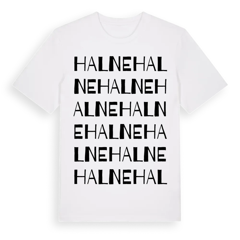 Halne ordlek t-shirt är inspirerad av byn Halne i Västra Götalands län, Sverige. Tröjan är designad för dig som har en speciell koppling till platsen – oavsett om du bor här, har rötterna här eller bara älskar Halne.