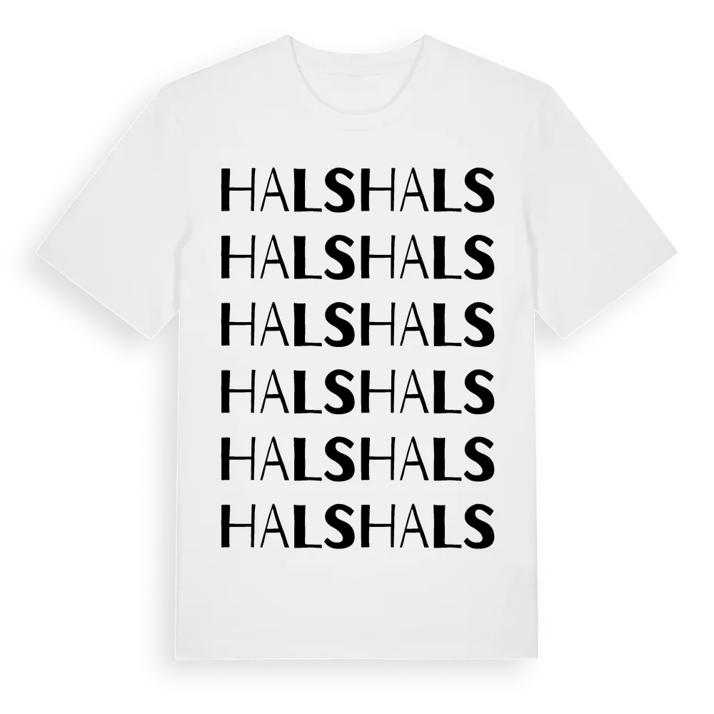 En ordlek byggd på Halss namn. Subtilt och klurig – ett motiv som bara de som verkligen känner platsen fullt ut förstår. Premium bomull, unisex – från Hals i Västra Götalands län.