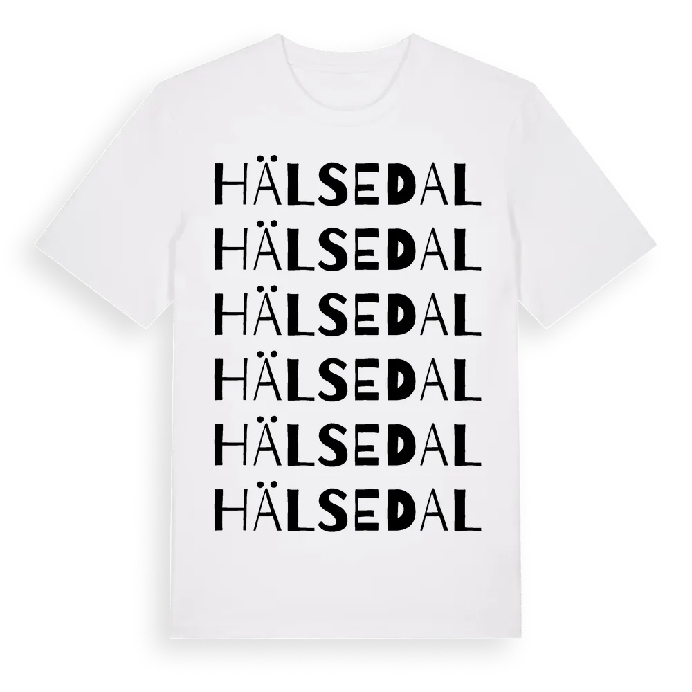 Hälsedal ordlek t-shirt är inspirerad av Hälsedal i Västra Götalands län, Sverige. Tröjan är designad för dig som har en speciell koppling till platsen – oavsett om du bor här, har rötterna här eller bara älskar Hälsedal.