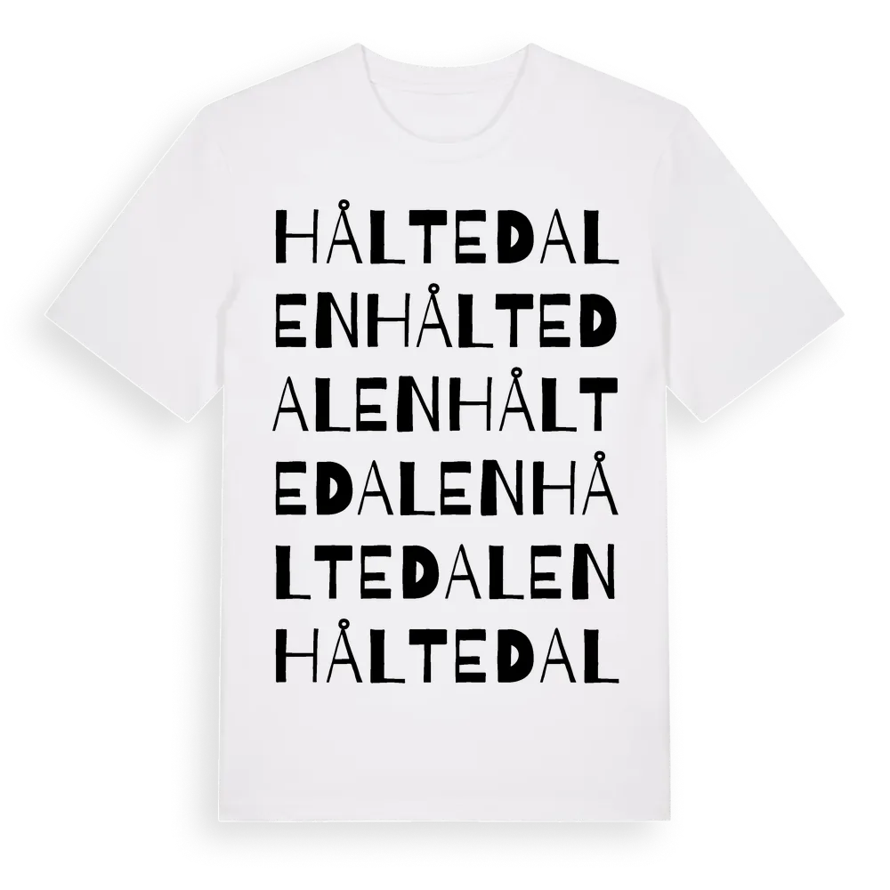 Håltedalen ordlek t-shirt är inspirerad av Håltedalen i Västra Götalands län, Sverige. Tröjan är designad för dig som har en speciell koppling till platsen – oavsett om du bor här, har rötterna här eller bara älskar Håltedalen.