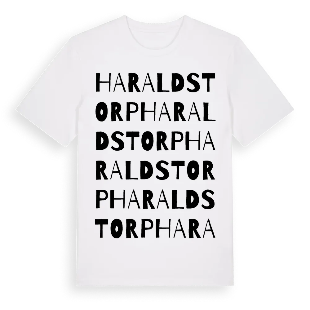 Haraldstorp ordlek t-shirt är inspirerad av Haraldstorp i Västra Götalands län, Sverige. Tröjan är designad för dig som har en speciell koppling till platsen – oavsett om du bor här, har rötterna här eller bara älskar Haraldstorp.