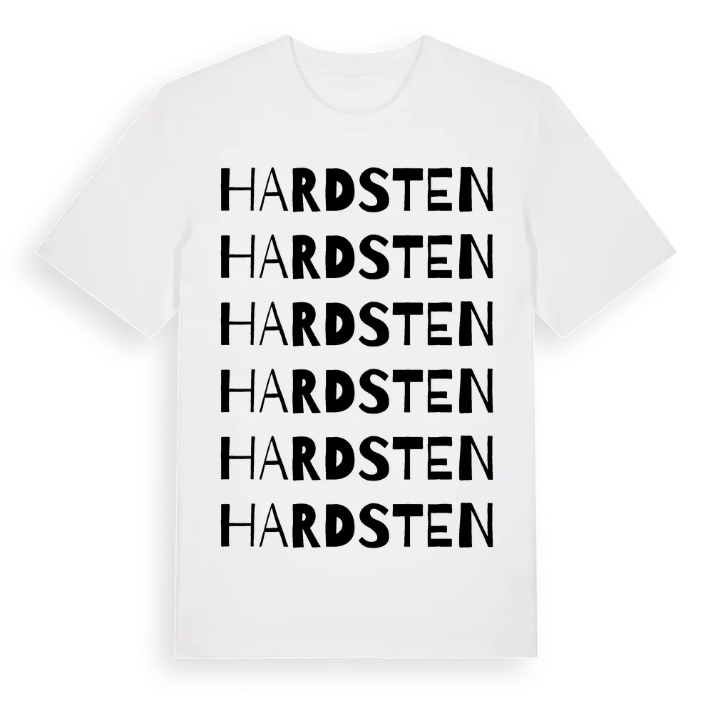 En ordlek byggd på Hardstens namn. Subtilt och klurig – ett motiv som bara de som verkligen känner platsen fullt ut förstår. Premium bomull, unisex – från Hardsten i Västra Götalands län.