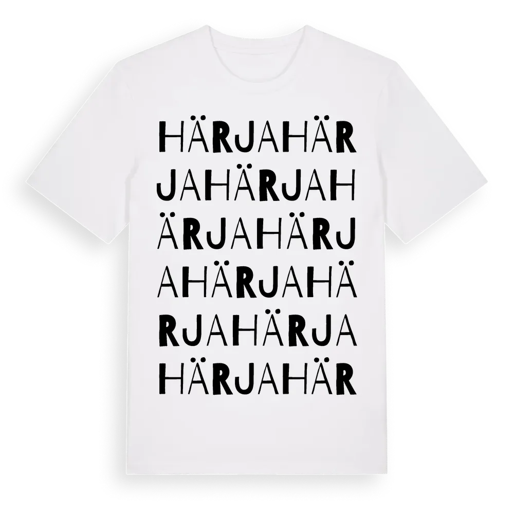 Härja ordlek t-shirt är inspirerad av byn Härja i Västra Götalands län, Sverige. Tröjan är designad för dig som har en speciell koppling till platsen – oavsett om du bor här, har rötterna här eller bara älskar Härja.