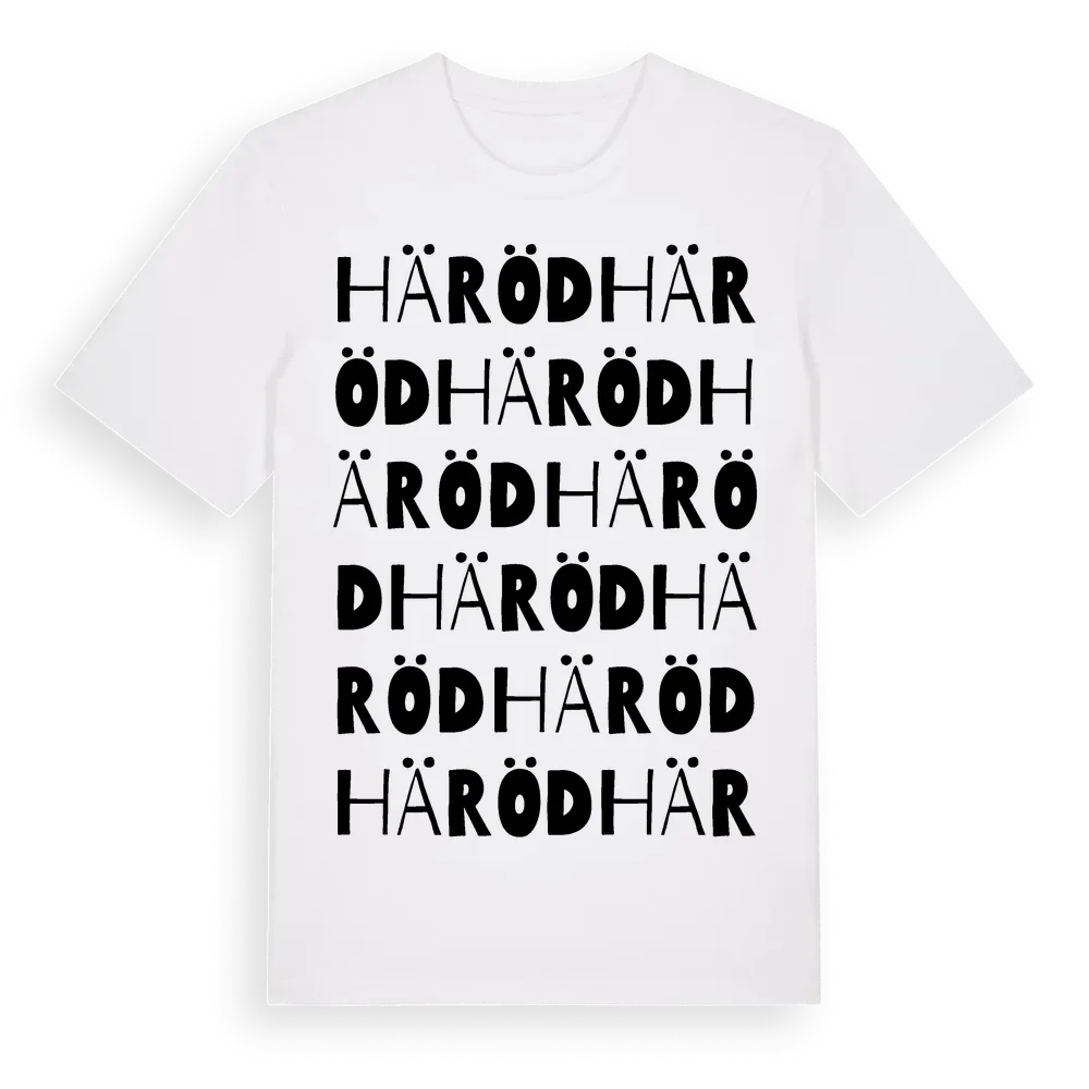Häröd ordlek t-shirt är inspirerad av Häröd i Västra Götalands län, Sverige. Tröjan är designad för dig som har en speciell koppling till platsen – oavsett om du bor här, har rötterna här eller bara älskar Häröd.