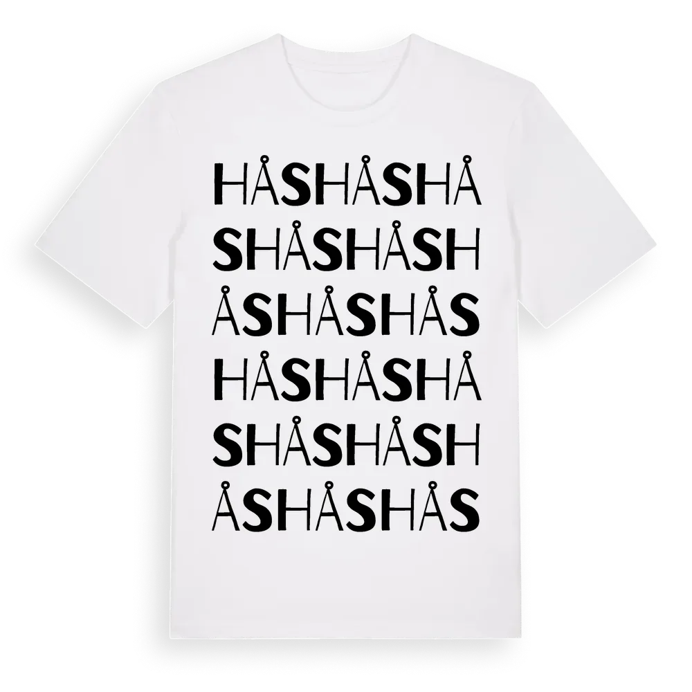 Hås ordlek t-shirt är inspirerad av Hås i Västra Götalands län, Sverige. Tröjan är designad för dig som har en speciell koppling till platsen – oavsett om du bor här, har rötterna här eller bara älskar Hås.