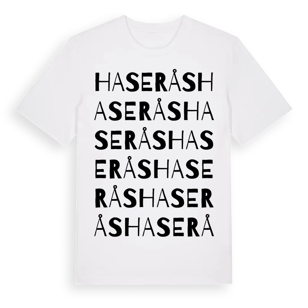 Haserås ordlek t-shirt är inspirerad av byn Haserås i Västra Götalands län, Sverige. Tröjan är designad för dig som har en speciell koppling till platsen – oavsett om du bor här, har rötterna här eller bara älskar Haserås.