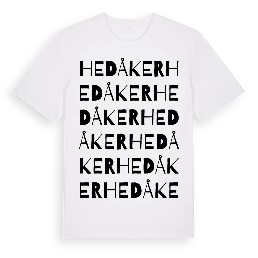 Hedåker ordlek t-shirt är inspirerad av Hedåker i Västra Götalands län, Sverige. Tröjan är designad för dig som har en speciell koppling till platsen – oavsett om du bor här, har rötterna här eller bara älskar Hedåker.