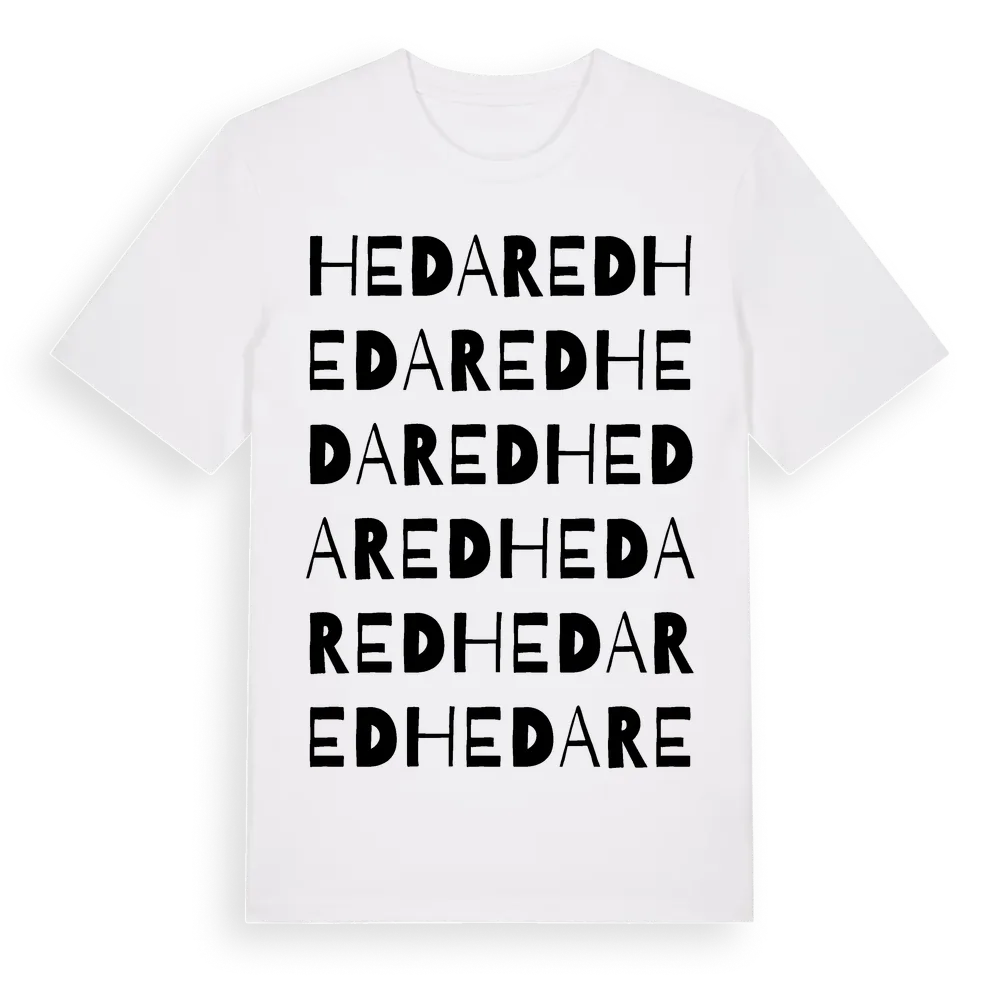 En ordlek byggd på Hedareds namn. Subtilt och klurig – ett motiv som bara de som verkligen känner platsen fullt ut förstår. Premium bomull, unisex – från Hedared i Västra Götalands län.