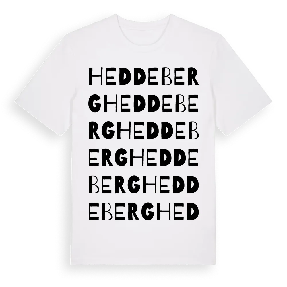 Heddeberg ordlek t-shirt är inspirerad av Heddeberg i Västra Götalands län, Sverige. Tröjan är designad för dig som har en speciell koppling till platsen – oavsett om du bor här, har rötterna här eller bara älskar Heddeberg.