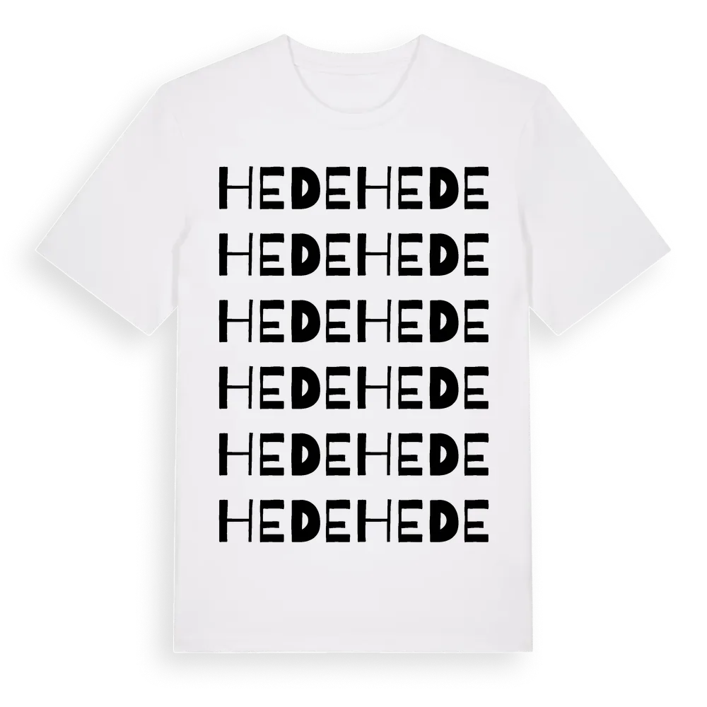 Hede ordlek t-shirt är inspirerad av byn Hede i Västra Götalands län, Sverige. Tröjan är designad för dig som har en speciell koppling till platsen – oavsett om du bor här, har rötterna här eller bara älskar Hede.