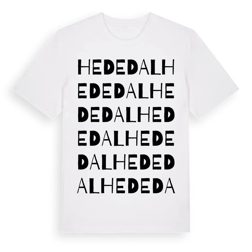 Hededal ordlek t-shirt är inspirerad av byn Hededal i Västra Götalands län, Sverige. Tröjan är designad för dig som har en speciell koppling till platsen – oavsett om du bor här, har rötterna här eller bara älskar Hededal.