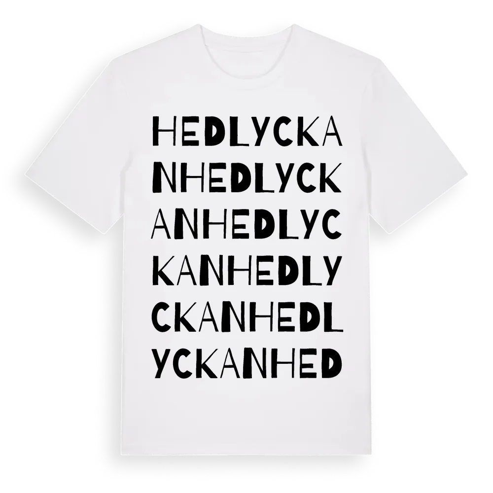 Hedlyckan ordlek t-shirt är inspirerad av Hedlyckan i Västra Götalands län, Sverige. Tröjan är designad för dig som har en speciell koppling till platsen – oavsett om du bor här, har rötterna här eller bara älskar Hedlyckan.